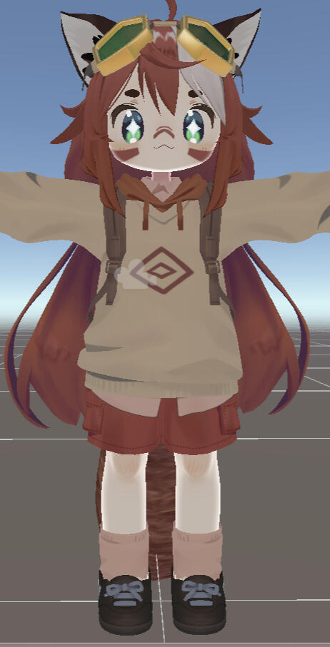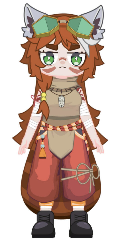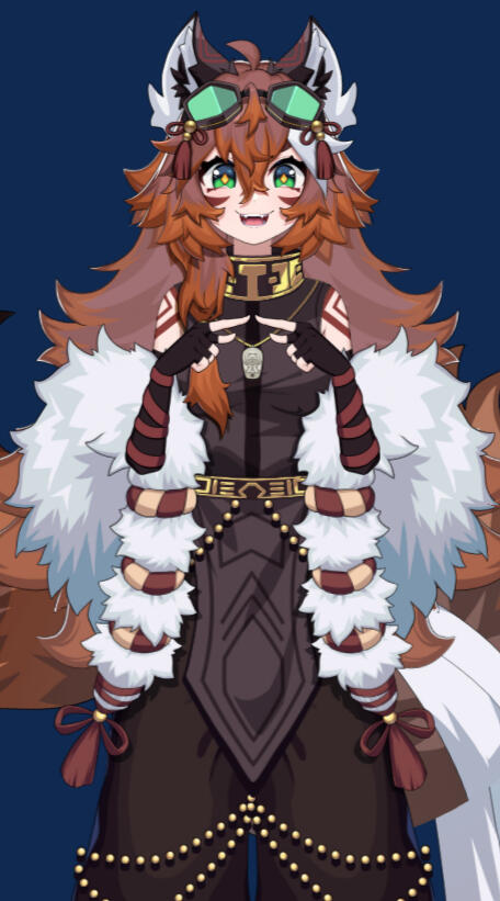 Mon tout premier modèle (sans compter les tests) crée par mes soins sur Vroid, c'est gratuit acheter le. Design réalisé à l'aide Kittyp3rl, merci de l'excellent travail. Le concept était une Miko Panda roux. C'est avec ce modèle et ce design que j'ai démarré le Vtubing et que mon aventure commença.